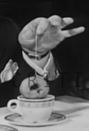 Still from “Men seated around a table dip donuts in coffee cups and eat during the Donut Dunk...” (1946)