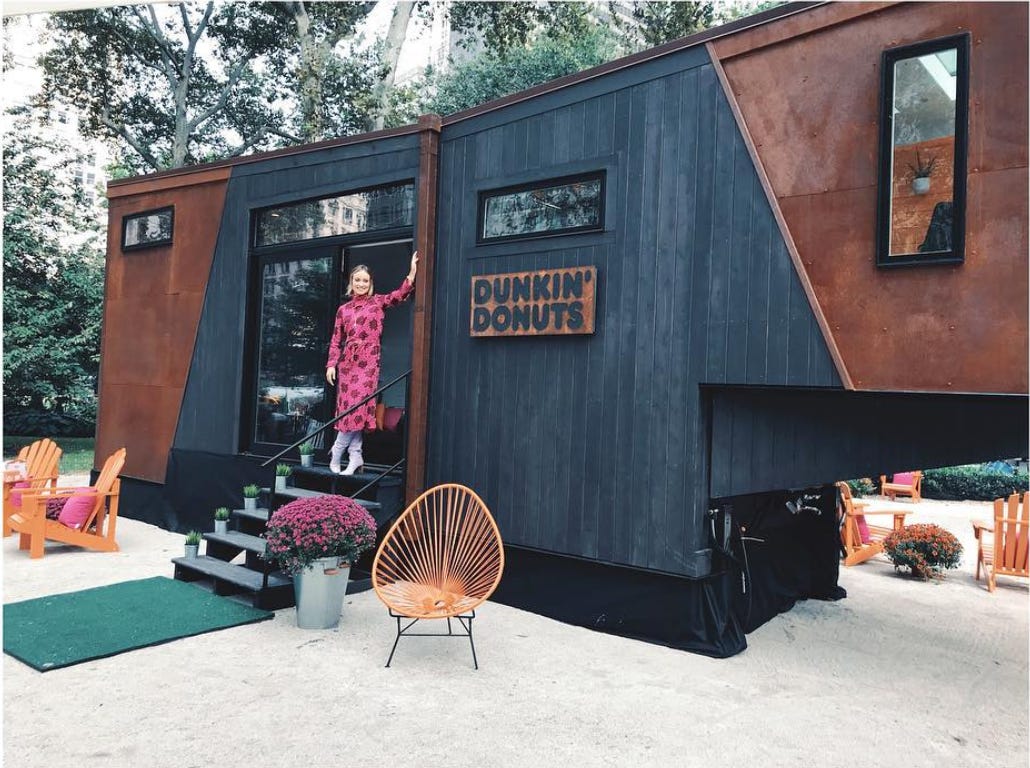 Olivia Wilde at the Dunkin’ Donuts tiny house in New York (2018)
