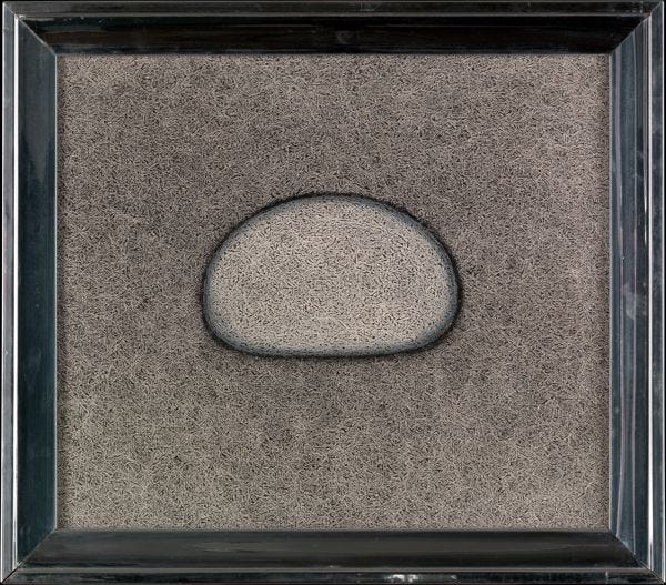After the initial 18 hour rise comes another moment of kneading, though barely that. The dough is pulled over itself several times—a kind of coaxing through rearrangement—before being formed into a ball. Where a regular loaf of bread requires forceful, intensive movements from the baker’s hands, the no-knead recipe requires the inverse: the baker must step away from the dough to allow time to take responsibility over the kinetic energy supplied in traditional recipes by the body but in the no-knead by the act of doing nothing. Rather than engineering transformation through stuttering bursts, the long, languishing moment stretched wide becomes the primary conductor.